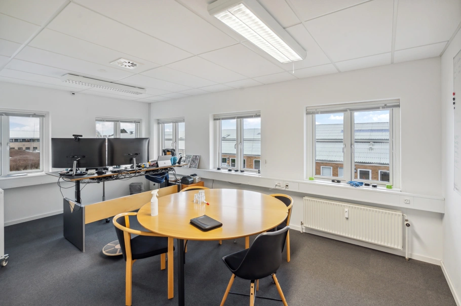 Et særdeles velbeliggende og indbydende kontorlejemål, med nem adgang fra Sønderborg motorvejen, for såvel ansatte som kunder og besøgende.