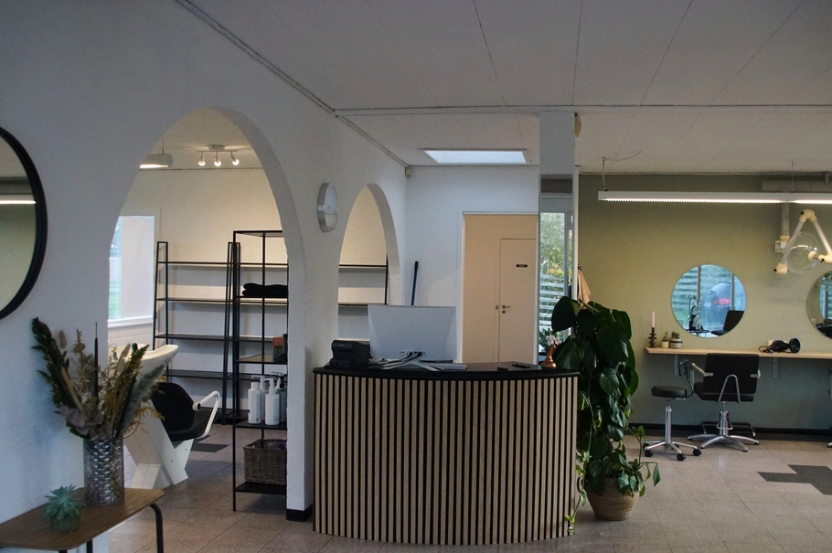 Forretningen er indrettet med et venteværelse og et salon område med 6 pladser, 2 vaske og flotte spejle. Derudover er der et mindre