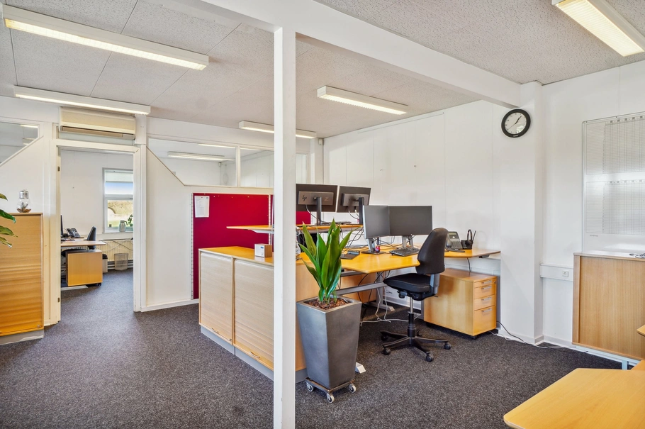 Med kort afstand til af- og tilkørselsramperne til Sønderborgmotorvejen udbydes dette lejemål med gode faciliteter for oplagring eller produktion.