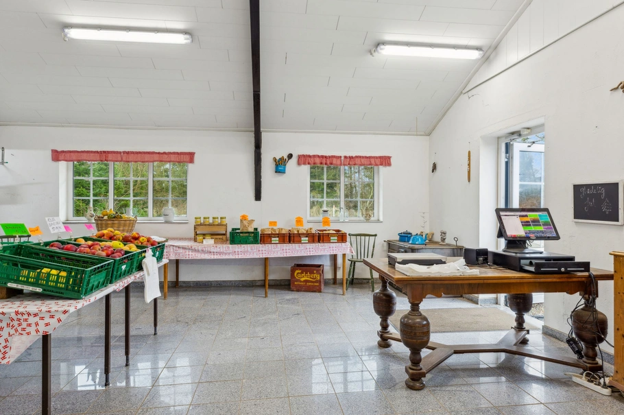 Har du en drøm om at drive din egen virksomhed på landet? Nu har du chancen for at leje et fantastisk lokale med uendelige muligheder! Dette lokale har i mange årtier været anvendt som gårdbutik, hvilket giver det en unik charme og historie. Indenfor finder du et charmerende butikslokale med masser af plads til dine varer eller kreative projekter. Der er også et rummeligt lager med en stor port, som gør det nemt at modtage leverancer og opbevare dine produkter.