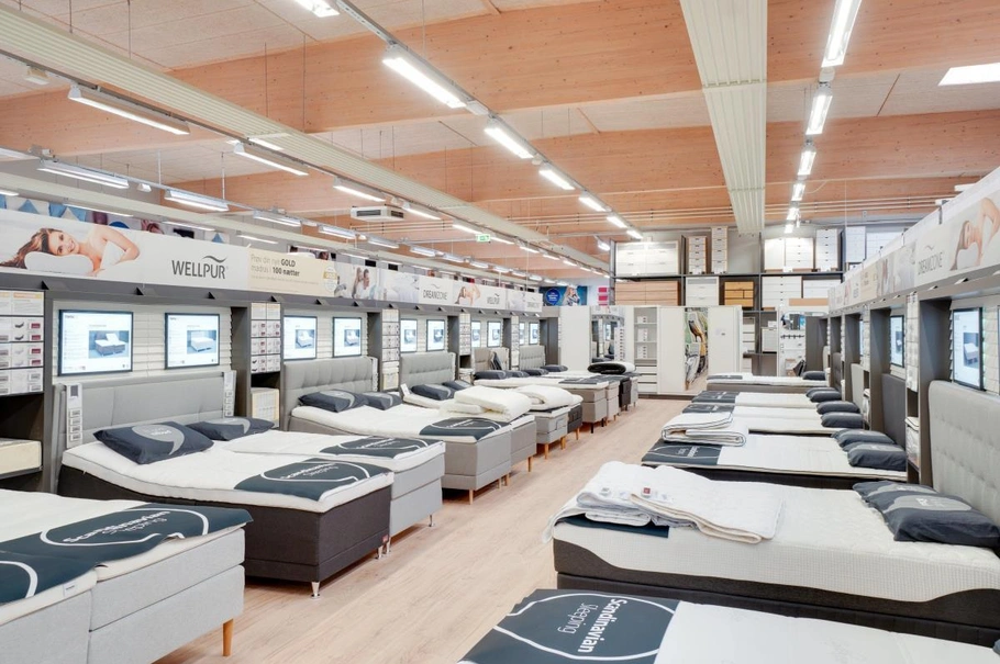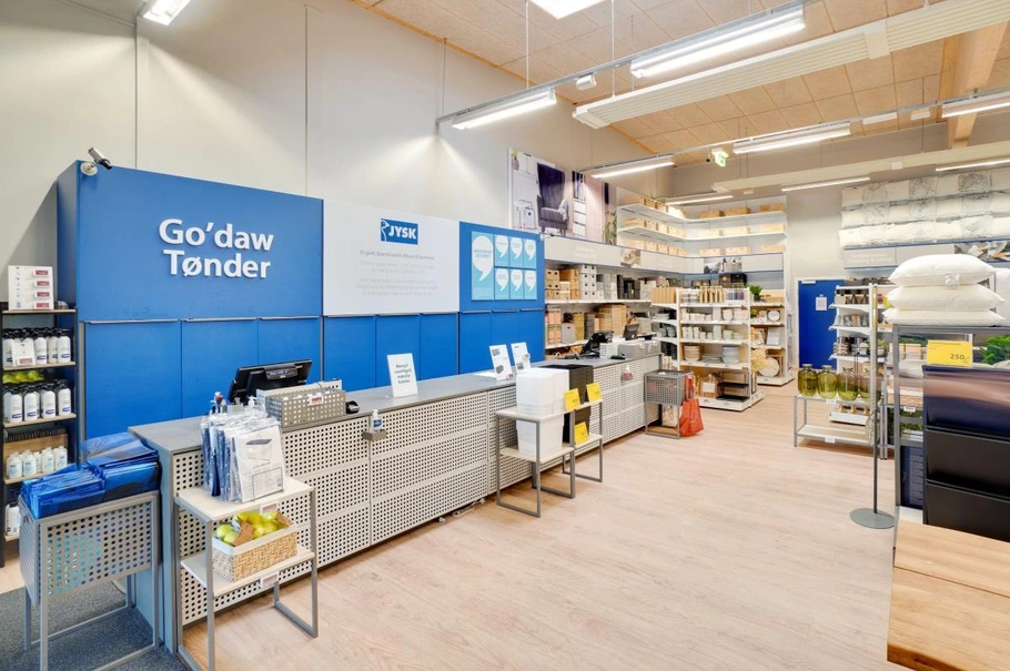 Lejemålet er indrettet med kundeindgang fra parkeringspladsen, foran ejendommen via vindfang, til stort butikslokale som er med gipslofter med ovenlysvinduer og god grundbelysning. Lejemålet er i dag opdelt med overvejende butik og kun mindre lager, opdeling er sket i lette konstruktioner, så denne fordeling nemt kan ændres. Fra ejendommens bagside er der port i ind til lageret, som også bruges til vareudlevering. Derudover findes der personalerum med kontor, toiletter og spiserum.