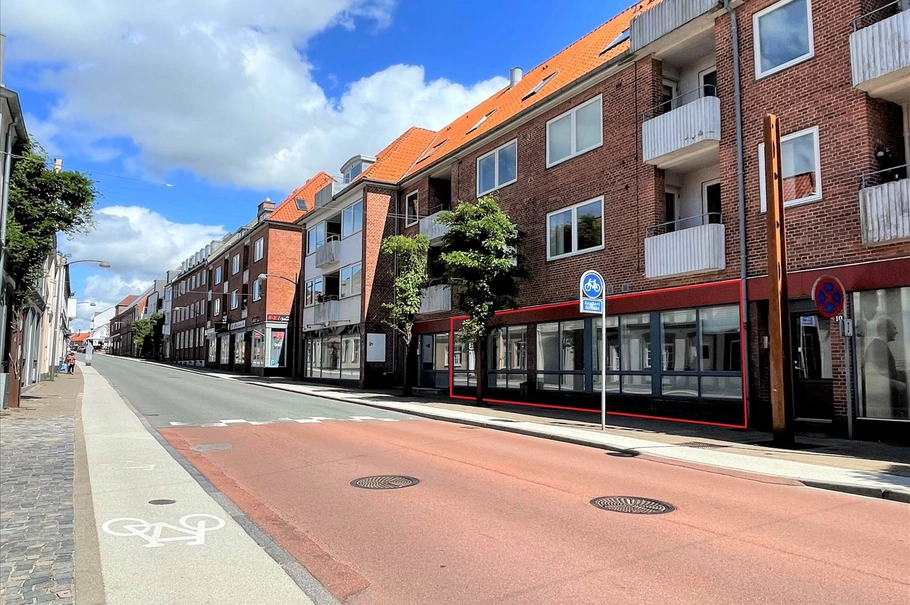 - Bred facade og stor synlighed ud mod trafikeret ”hovedgade” i Vardes bymidte