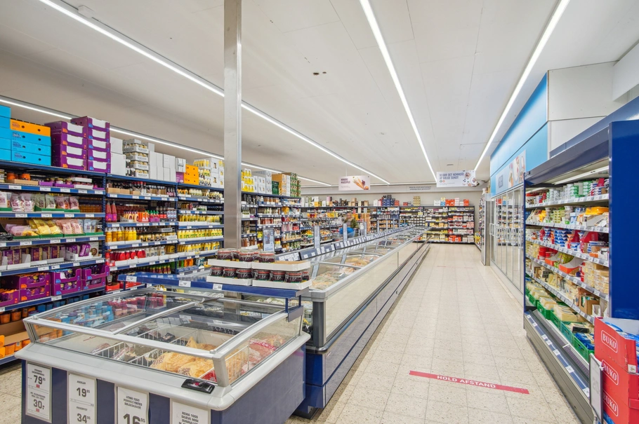 Lokalerne har tidligere været udlejet til Rema 1000 og andrager et areal på 1.047 m², som er fordelt med et butiksareal på 997 m² og en varegård på 50 m².