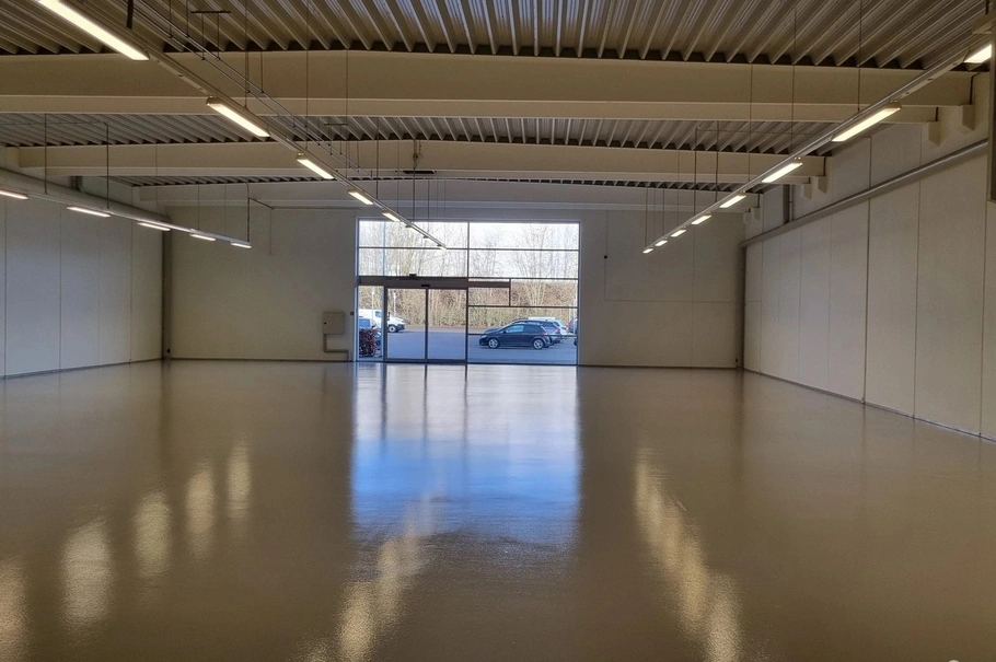 Lejemålet er jf. BBR-meddelelsen 993 kvm., som fordeler sig på følgende: Stort lokale, som tidligere har været brugt som showroom. Værksted med port fra bagsiden af lejemålet, hvor tidligere lejer har haft lifte til biler. Køkken med spiseplads, omklædning samt toilet og badfaciliteter.
