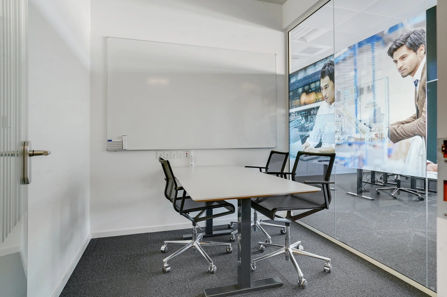 det samme gør sig gældende i lejemålet, som byder på en lys og tidløs indretning med flere enkeltmands-/cellekontorer, mødelokaler og storrumskontor. Herudover er der toilet, kopi- og arkivrum samt køkken.