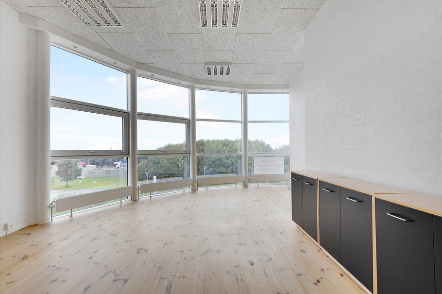 Dette pæne kontorlejemål på Roskildevej i Vejle står klar til kommende lejer og er indflytningsklart.