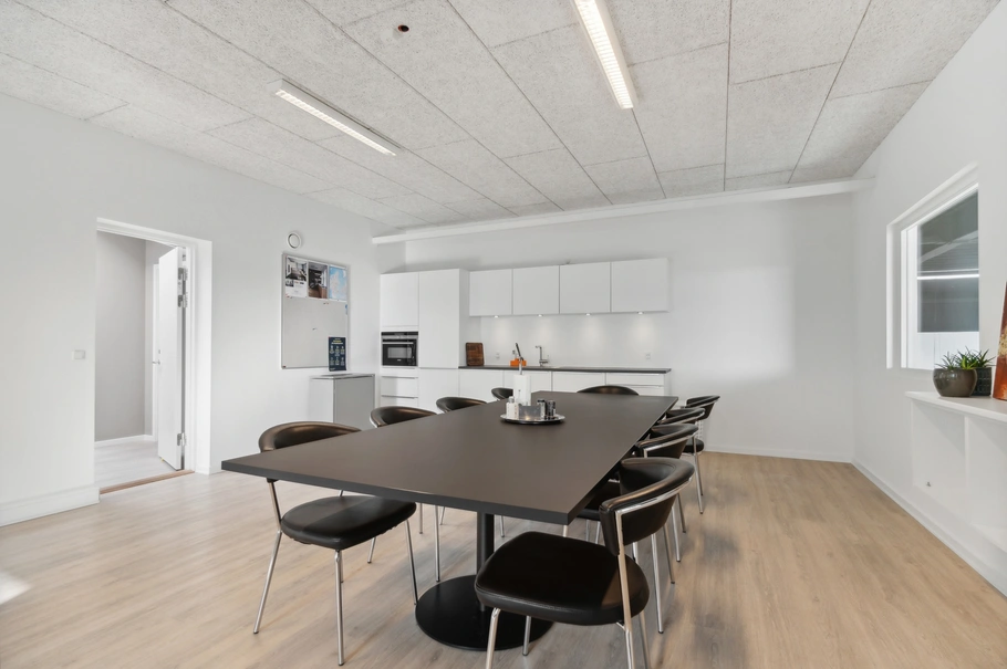 Der er desuden adgang til fællesarealer, herunder køkken og badeværelse/wc, samt et yderligere mødelokale til, at imødekomme diverse behov. Denne rummelighed og funktionalitet skaber et ideelt arbejdsmiljø for mange virksomheder.
