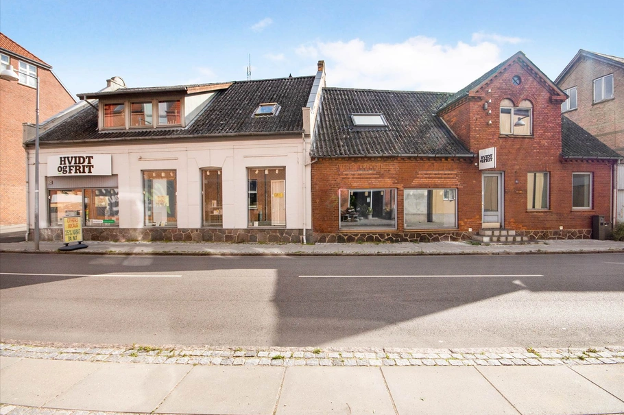 På hovedgaden i Faxe by udbydes butikslokale med tilhørende lager på i alt 368 m² til leje.