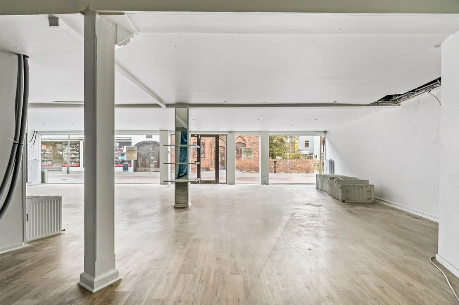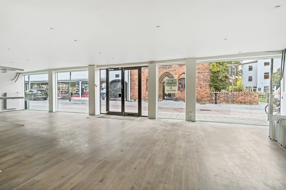 Lejemålet overtages nyindrettet med nyt toilet og køkken. Der er flere store vinduespartier der giver mulighed for udstilling.