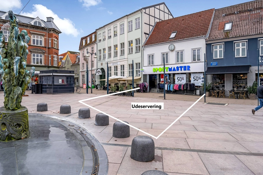 Lejemålet har flere anvendelsesmuligheder og kan både indrettes til butik, café eller lignende. Ønsker man at åbne en cafe eller restaurant er der gode muligheder for udeservering på torvet.