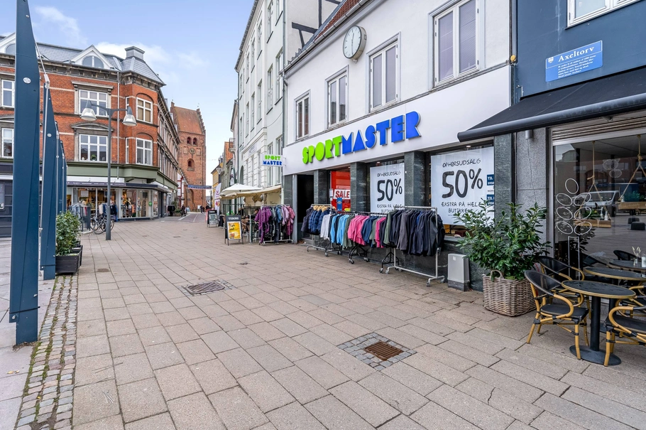 Lejemålet er beliggende på Axeltorv i hjertet af Næstved centrum. Det er ikke til at komme udenom, at det er en af byens bedste beliggenheder i flot og karismatisk ældre ejendom.