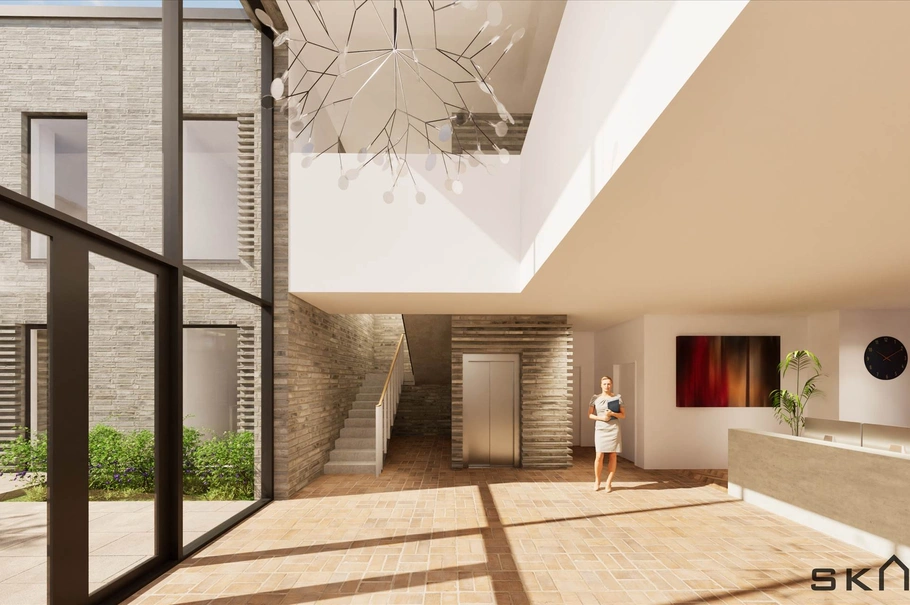 Ejendommen vil være særdeles præsentabel i sit udtryk, med et stramt arkitektonisk udtryk hen mod funkisstilen. Der vil således være tale om en facade i flotte gyldne mursten, forskellige tagflader bl.a. med sedumtag, samt en masse vinduer som sikrer et super klima og udtryk. Ejendommen opføres i hhv. 2. og 3. plan med elevator til hver etage.