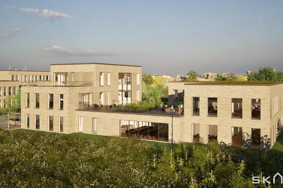 I den helt nye bydel ved Stenlængegård - i Næstveds Nord-Østlige hjørne - opføres nu to kontorhuse på i alt 4.400 m².Det første kontorhus på 2.200 m² opføres i perioden 2025-2026; og forventes klar til indflytning medio 2026.Kontorhusene opføres i op til 3 plan med ankomstportaler i stueplan i dobbelt højde forsynet med hhv. trapper og elevatorer til de enkelte lejemål.Alle lejemål har egne the-køkken(er), toilet(ter), teknik-, rengøringsrum m.v. - foruden kontorindretning, som p.t. kan indrettes i samarbejde mellem lejer og udlejer.Lejemålene indrettes med hvide vægge, som opdeles med delvis glasvægge, akustik-/systemlofter med integreret LED-belysning og tæppefliser på gulvarealer i kontorlokalerne.Her er naturligvis sørget for det bedste indeklima med udvendige solgardiner og indvendigt klimaanlæg, som foruden luftskifte kan sænke temperaturen til 5° under udvendig temperatur.Sikkerheden er der sørget for via ABL-brandsystem og lejer har mulighed for at etablere eget alarmsystem.Alle kontor- og mødelokaler har it-kabling, som er forbundet til eget teknikrum.--Der kan indrettes kontorer størrelser fra ca. 300 m² til ca. 1.200 m².Byggeriet er opført efter nyeste bygningsreglement og vil have særdeles lave forbrugsudgifter.Driften står udlejer for, så lejer kan koncentrerer sig om at passe sin egen forretning.Fællesarealer:Der opføres fælles kantine/stormøderum med plads til ca. 100 mennesker. Her vil være anretterkøkken, således at eventuelle madordninger kan håndteres herfra. Det er tanken, at rummet skal kunne opdeles i to mindre enheder via foldevæg eller lignende. Her vil være både handicaptoiletter og badeforhold, som kan anvendes af alle ejendommens brugere.Det store fælles gårdmiljø, som skaber adgang til såvel kontorer som fællesfaciliteter, indrettes i moderne og stilrene materialer; med natursten, beplantning, møbler m.v..Her er også tagterrasser, som de fleste lejemål vil få adgang til. Her er det tanken at "be-grønne" dele af tagarealerne med flot sedumbeplantning.Transporten til og fra kontorhuset er helt idéel:Bil: Kontorhuset ligger på hjørnet af Østre Ringvej og Stenlængegårdsvej, som fører lige ud til omfartsvejene og videre mod motorvejen. Om ca. 6-7 år forventes den nye motorvej at ramme Næstved - kun få minutters kørsel fra kontorhusene.Tog: Her er få minutters gang til trinbrættet i Næstved Nord, som kører passagerer både både nord- og syd på.Bus: Forventes at stoppe tæt på - eller som minimum ved Næstveds nye store svømmehal, som stå færdig primo 2025. Svømmehallen kan ses fra lejemålet og ligger i gå-afstand herfra.Parkering: Her vil til første etape blive etableret ikke mindre end 77 parkeringspladser til biler - flere forsynet med el-ladestandere. Her vil også være overdækket cykelparkering ligeledes med mulighed for opladning af batteri til el-cyklerne.Området:I denne nye bydel opføres ikke mindre end 7 nye boligområder. Her er svømmehal under opførelse og ny stor børneinstitution er under planlægning på nabogrunden. Her vil IKKE blive opført flere kontorarealer.Nabo-området nord for jernbanen er et erhvervsområde. Mod hhv. syd og vest findes etablerede boligområder mens området mod øst huser den nye bydel og fører til omfartsvejen og den kommende motorvej.SÅLEDES ET NYT KONTORHUS, som man normalt skal til København for at finde.
