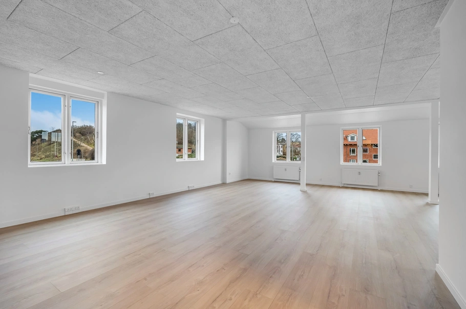 Lejemålet, der er total istandsat, med nye gulve lofter delvist nyere vinduer, består af et storrumskontor og et mindre kontor/ møderum, nyt køkken samt nyt badeværelse med brus. Herudover lille arkivrum i kælderen. Der vil være mulighed for indretning af mødelokale.