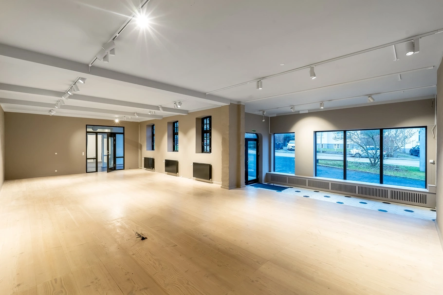 Med sin åbne planløsning er det muligt for kommende lejere at skabe et skræddersyet arbejdsmiljø, der passer præcist til virksomhedens behov, uanset om der er tale om en detailbutik, et showroom, et kontor eller noget helt fjerde.