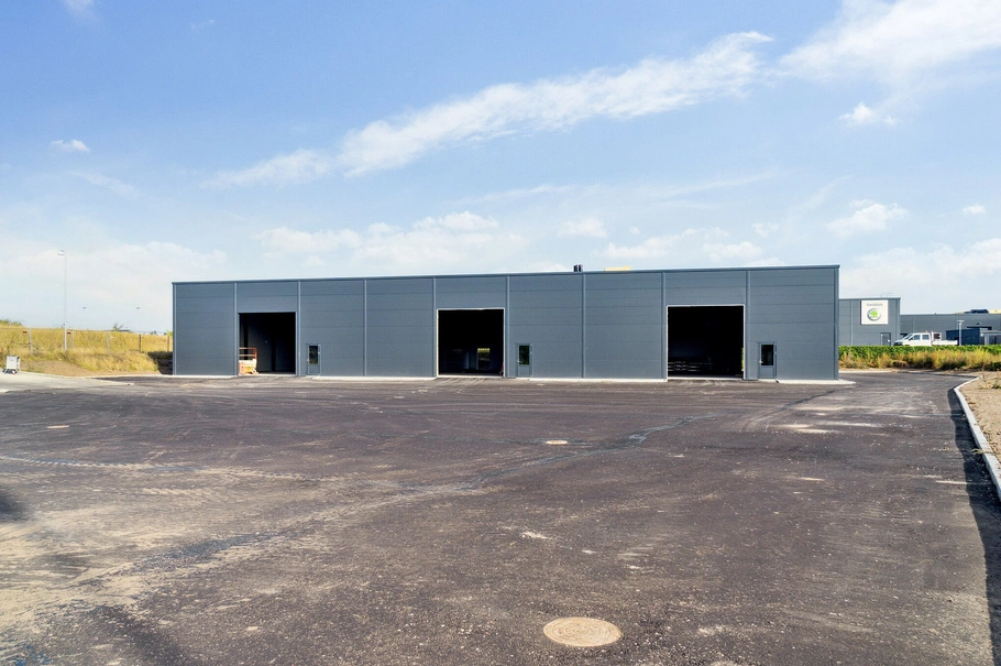 Bygningen er opført med tre haller på hver ca. 400 m² hvor der er mulighed for at leje en eller flere af hallerne. Bygningen er isoleret men ikke opvarmet d.d. Det kan dog aftales nærmer at udlejer opsætter en varmepumpe mod mer betaling.