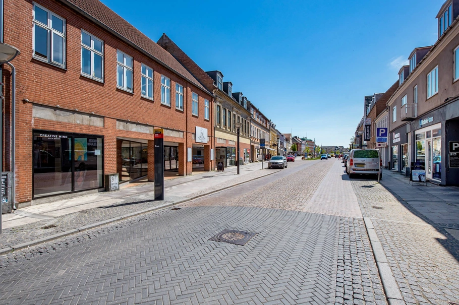 Lejemålet er beliggende i stilren og nyere ejendom, som for et halvt år siden blev istandsat herunder nye facadevinduer, gulve, belysning og lofter. Butikken fremstår dermed yderst præsentabel.