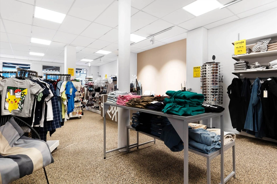 Lejemålet er indrettet med lyst butiksområde med nye lofter, LED belysning, store vinduespartier mod Storgade med god eksponering og synlighed for kundestrømmen igennem Storgade.