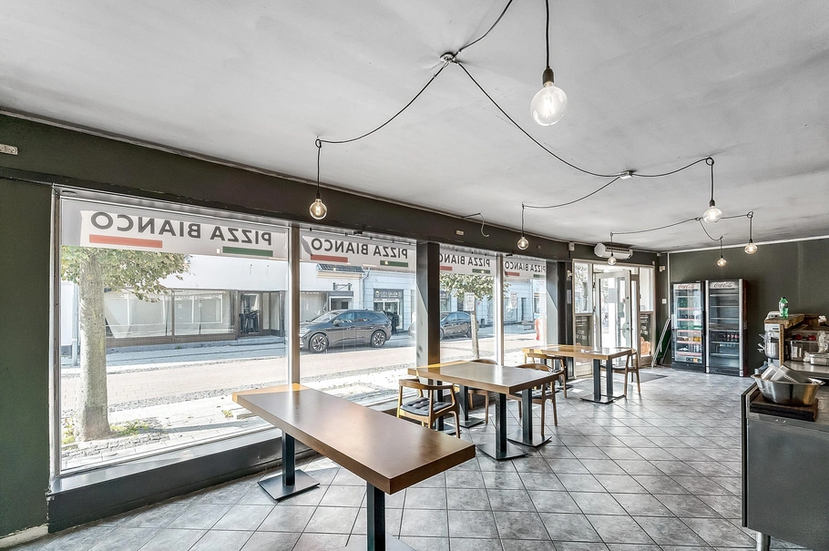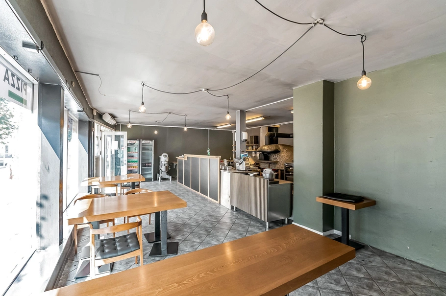Lejemålet er et tidligere pizzeria og der er mulighed for at overtage inventar og dermed komme i gang med det samme. Lejemålet er indrettet med siddepladser langs vinduet og en lang disk hvor pizzovn og anden produktion er bagved. Der er baglokaler med plads til køle og fryseskab samt opvaskeplads. Derudover er der toilet og et mindre lager.