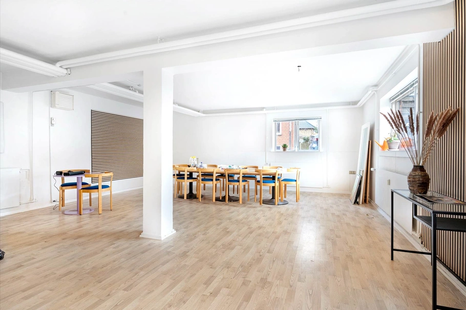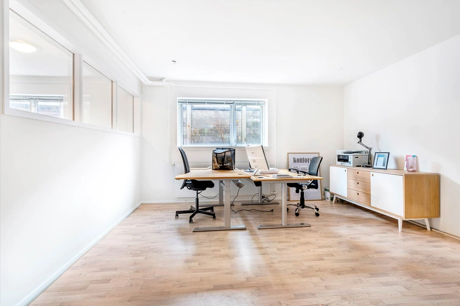 Med en størrelse på omkring 120 kvadratmeter til erhvervslokale i form af fx storkontor eller klinik og yderligere 30 kvadratmeter dedikeret til velfærd, tekøkken og to mindre opbevaringsrum, opfylder dette lejemål mange behov for plads og faciliteter. Det store erhvervslokale tilbyder fleksible muligheder og kan tilpasses efter behov, efter nærmere aftale med udlejer.
