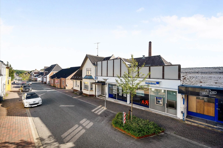 Opført i 1910 og tidligere har ejendommen været anvendt som detailbutik. Senere ombygget til pengeinstitut i 1986.