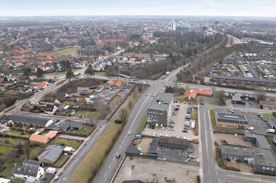 Ejendommen er beliggende i et godt beliggende erhvervsområde i Herning, med gode tilkørselsmuligheder for kunder og ansatte i kraft af den korte afstand til motorvejsnettet på knap 3 km. Det skal fremhæves, at der er gode muligheder for offentlig transport via bus (rute 6) ca. 200 meter fra ejendommen samt knap 2,5 km til Herning Banegård.