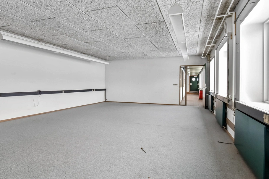 Lejemålet er indrettet med indgangsparti og fordelingsgang til kontorlokalerne, og rummer derudover toilet- og badeværelsesforhold samt dispositionsrum med mulighed for opbevaring m.v. Kontorlokalerne er indrettet med lyst gulvtæppe, hvidmalede vægge samt troldtektlofter.