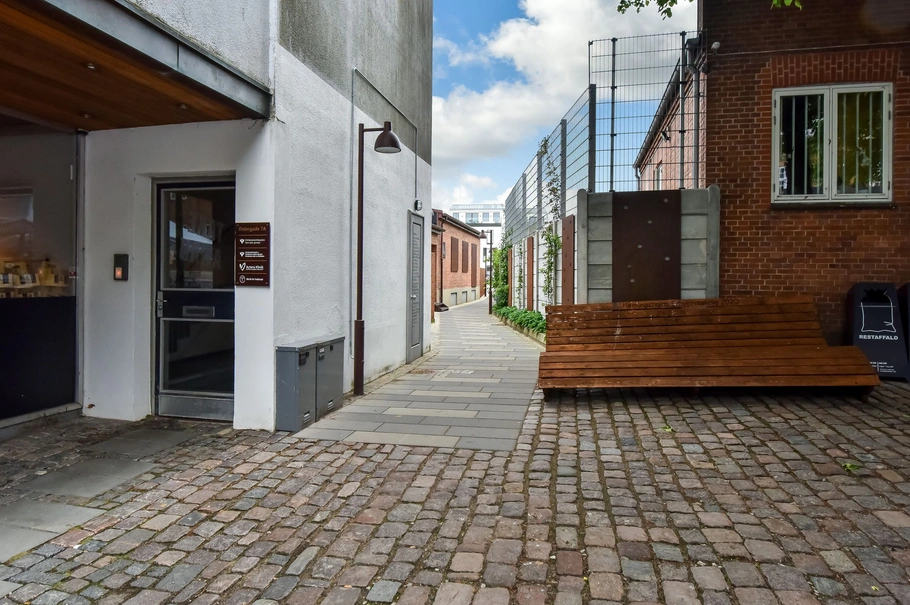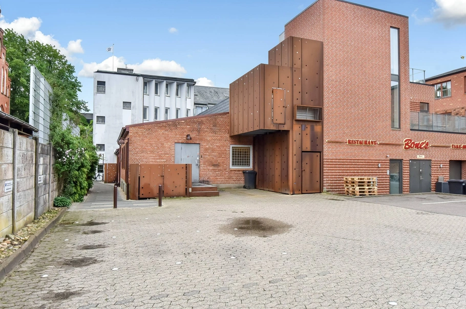 Nærmeste naboer i gågaden er bl.a. Herning Centralbibliotek og Hotel Eyde, der ligger overfor bygningen, samt restaurant Bones og Louis Nielsen og med kort afstand til Torvet.