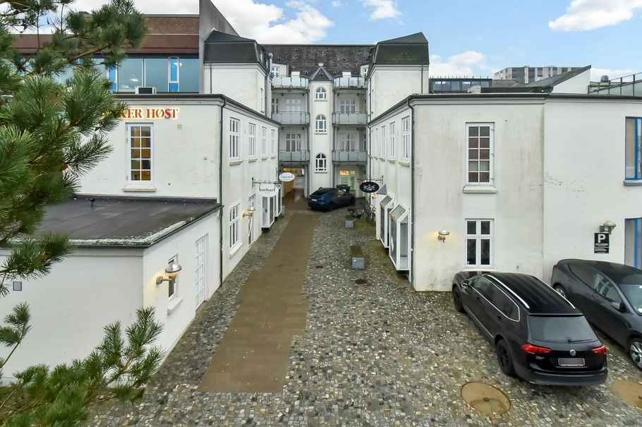 Beliggende på 1. salen i den flotte og præsentable gågadeejendom VOLMERHUS fra 1908, har du nu muligheden for at leje et kontorlejemål på 84 m².
