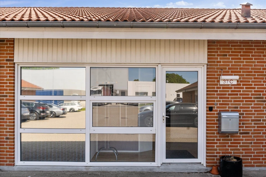 Lejemålet er godt indrettet med større fællesrum/showroom, stort kontor med 8-10 arbejdspladser, 3 mindre kontorer, disponibelt rum samt mødelokale. Hertil er der toiletfaciliteter samt mindre køkken. Yderligere hører der til lejemålet lagerlokale med adgang via port (H. 2,4 m og B. 4,0 m) fra ejendommens bagside.