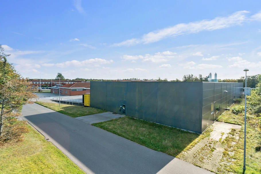 Højloftede produktions-/ lagerhaller beliggende i Egeris-erhvervsområdet i Skives sydlige del nær omfartsvej og indfaldsvej.