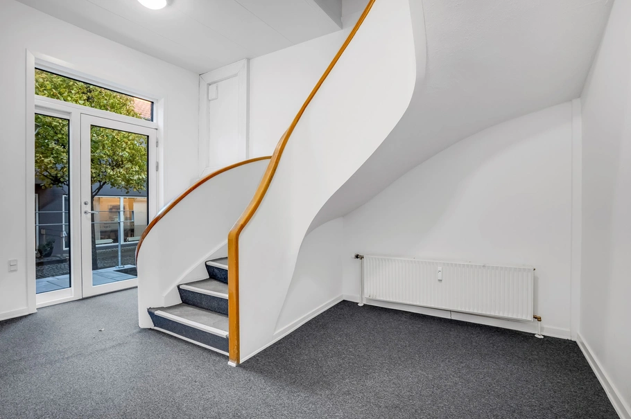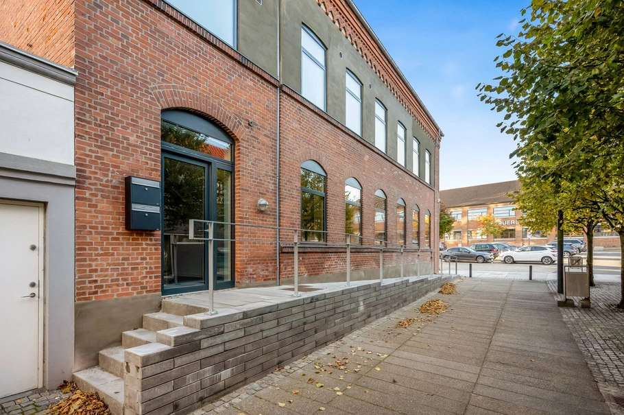 Lejemålet er beliggende i en flot ejendom i begyndelsen af Struer gågade og tæt på Struer Havnefront, der indenfor de seneste år har gennemgået en omfattende renovering/byfornyelse.