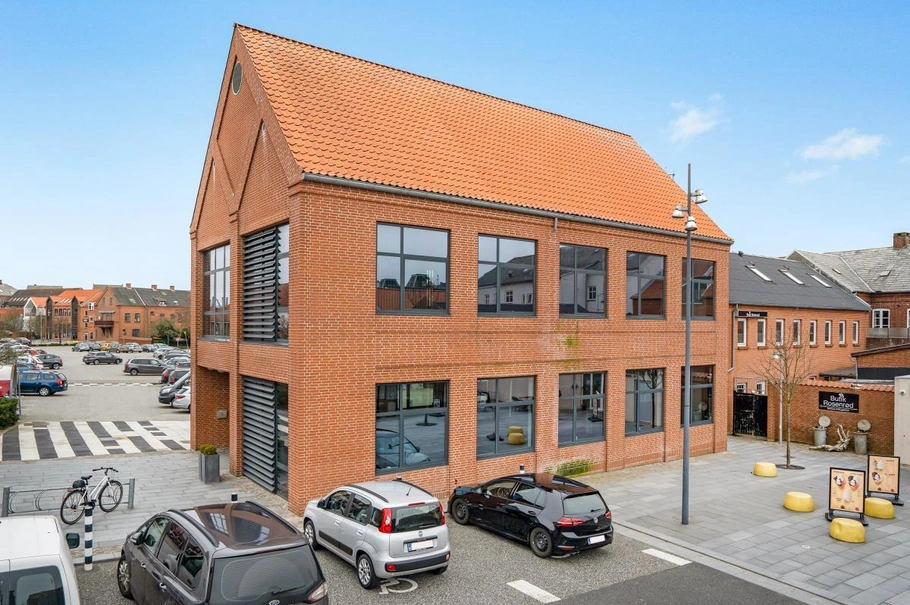 En meget flot og synlig ejendom beliggende midt på byens største parkeringsplads.