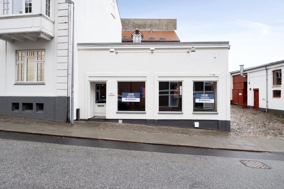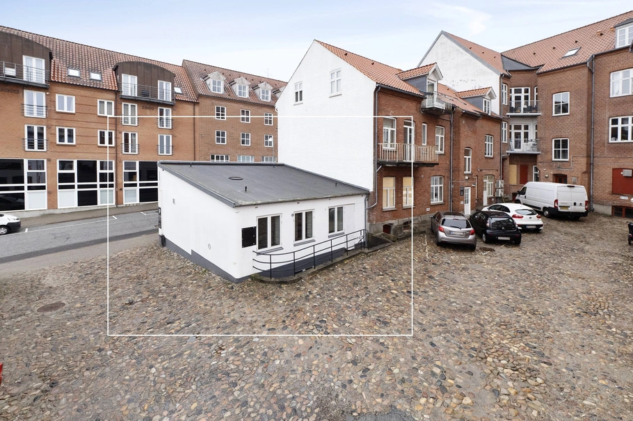 Naboer: Pizza Ekspressen, minimarked / kiosk, Bang & Olufsen og Palads Hotel som genbo.
