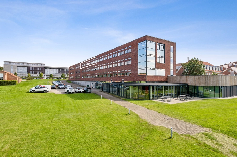 Præsentabelt kontorlejemål med attraktiv beliggenhed med gode tilkørsels- og parkeringsforhold - både midtbynært og naturskønt - og højt beliggende ved Nørresø med udsigt mod Nørresø og Viborg midtby.