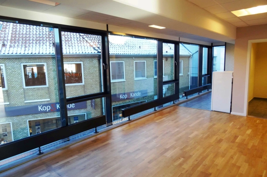 Alle lokaler har et rigtigt godt lysindfald og godt udsyn over Viborg fra de mange gulv til loft vinduer. Vinduerne er beklædt med mørk film, der både afviser varme samt indkig i lokalerne.